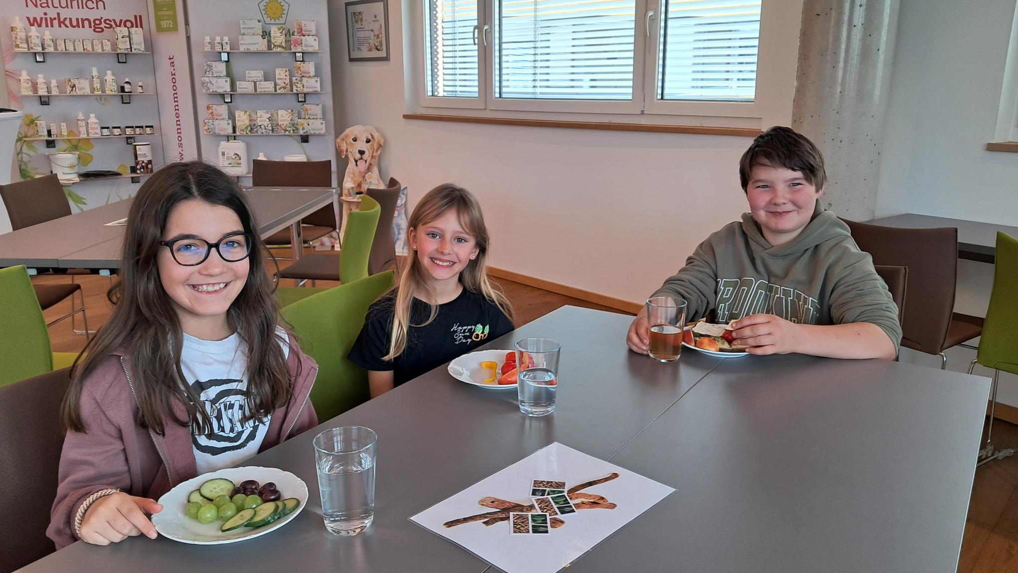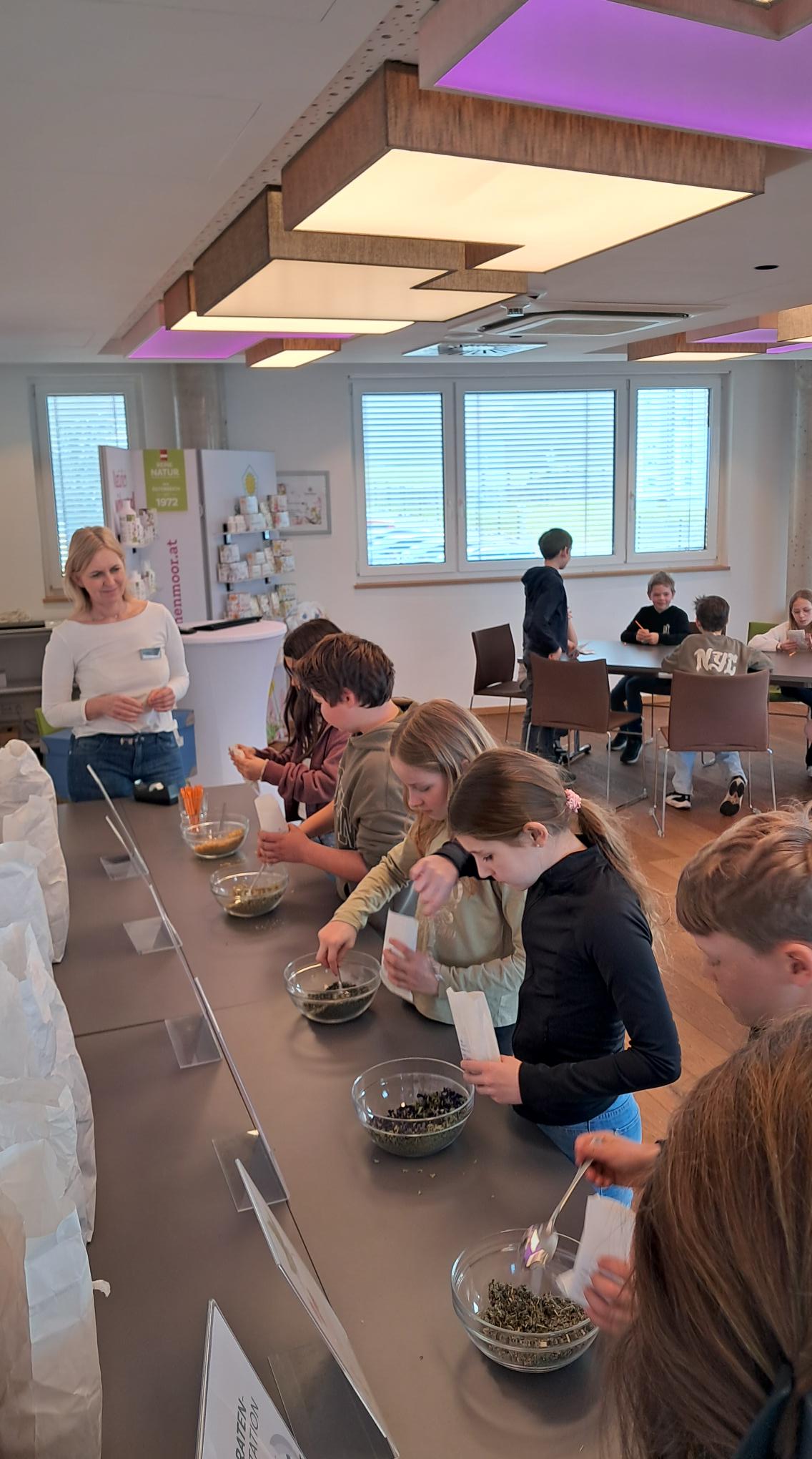 Am 10. März machten sich die "Großen" in der Schule (3. und 4. Klasse) auf den Weg, um die Firma Sonnenmoor in Anthering zu besuchen. In den Schauräumen erfuhren wir unter anderem einiges über verschiedene Heilkräuter und die Heilkraft des Moores. Die Mutigen unter uns verkosteten ein Gläschen Trinkmoor. Nach einer gesunden und leckeren Jause durften die Kinder ihren eigenen Kräutertee mixen. Alle bekamen zum Schluss ein kleines Abschiedgeschenk. Wir danken der Firma Sonnenmoor für den netten, sehr gut organisierten Vormittag.
